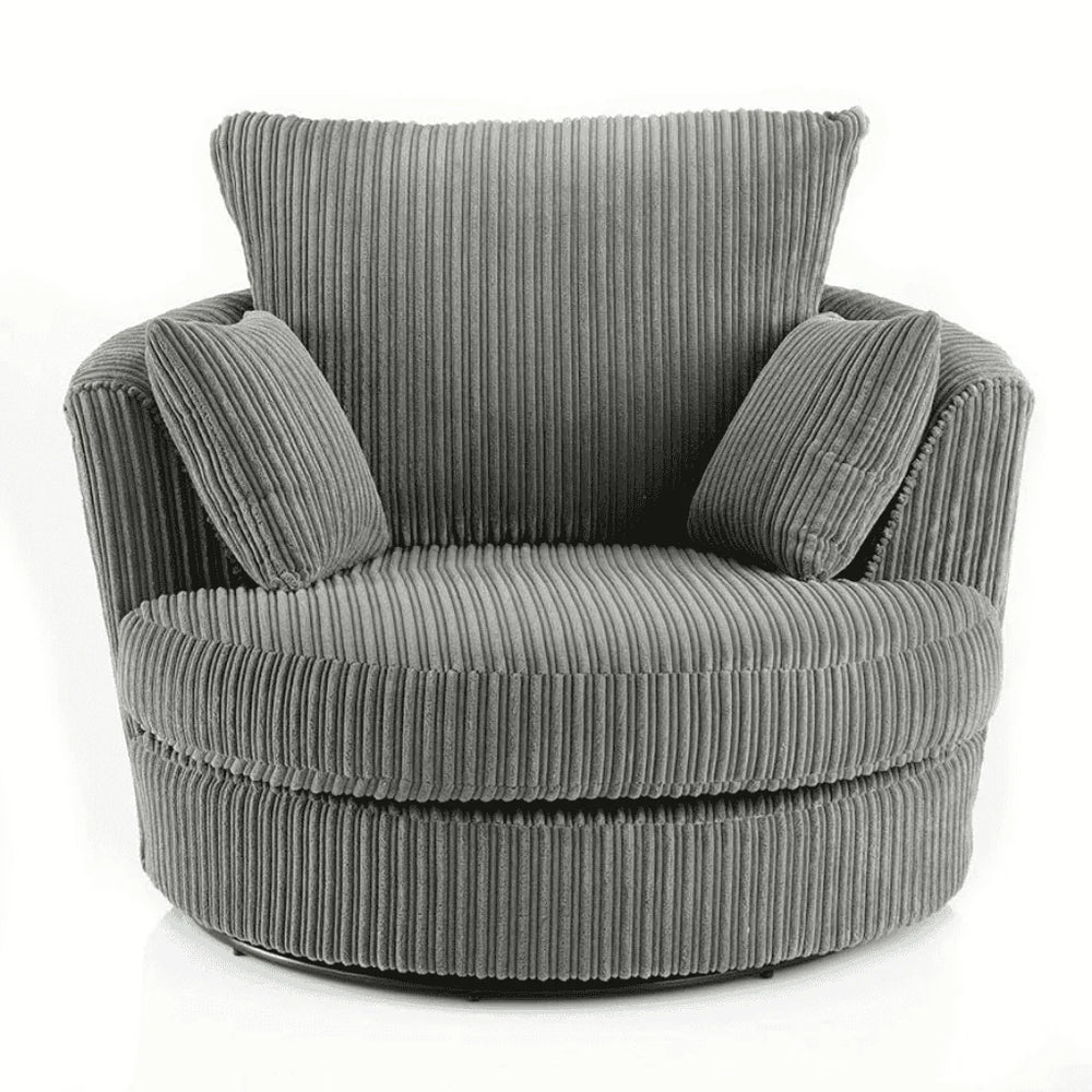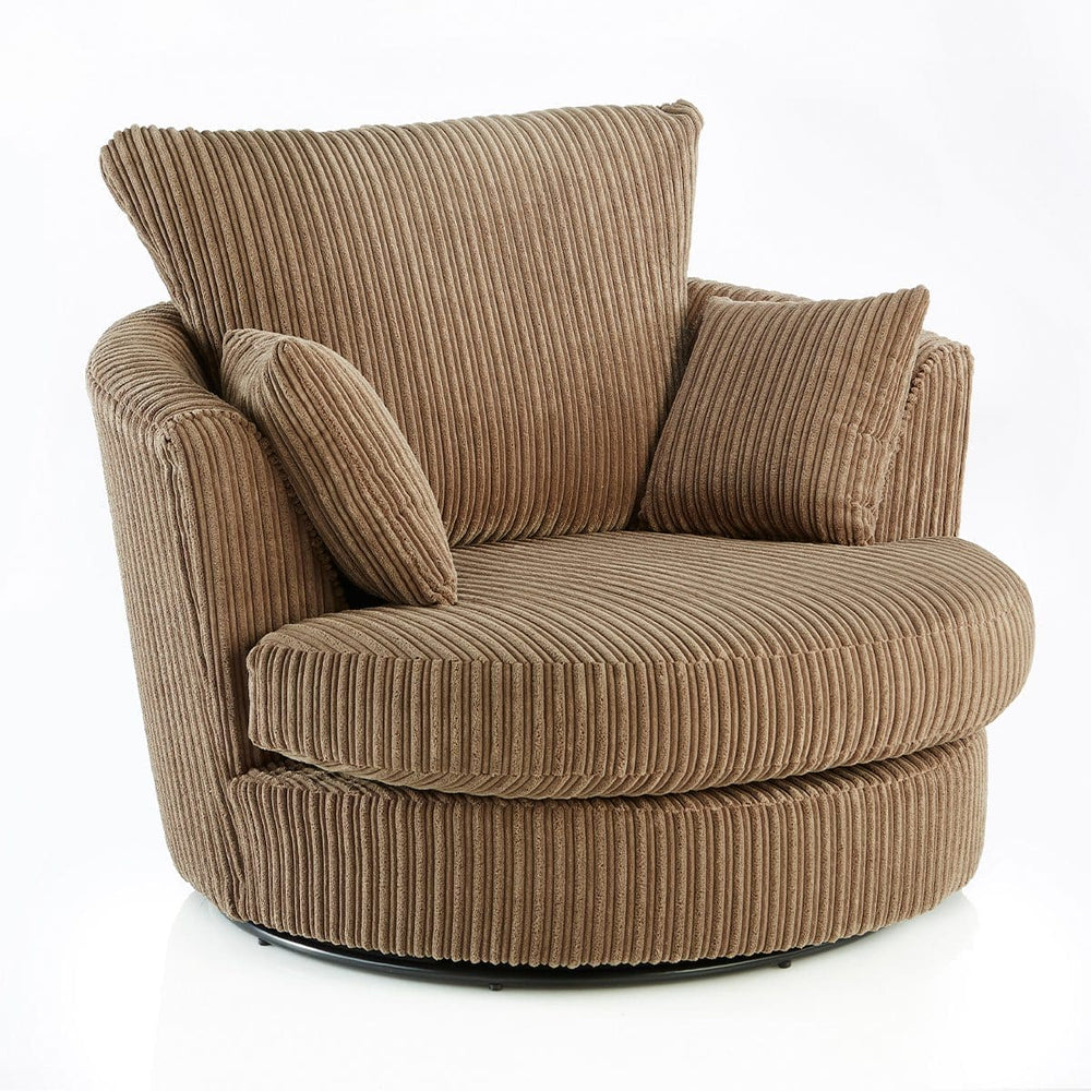 Add a touch of contemporary comfort to your home with the Modern Cord Swivel Chair. Upholstered in soft Jumbo Cord fabric and filled with foam and fibre cushions, this chair offers deep, supportive seating perfect for relaxing in style.