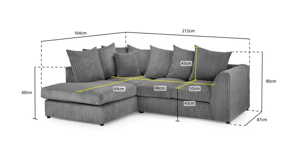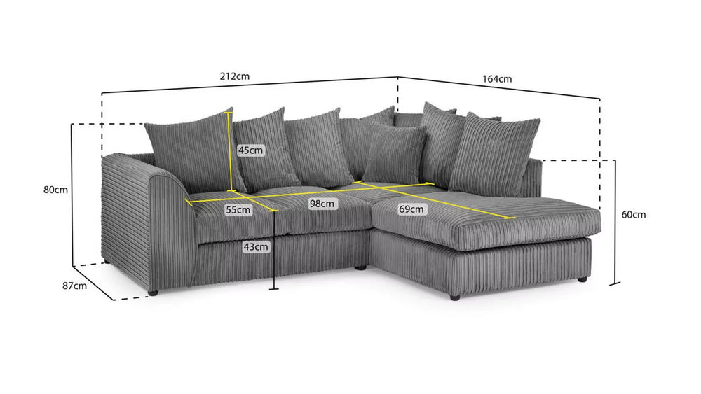 Jumbo Cord Corner Sofa – Spacious seating ideal for families and larger living rooms.