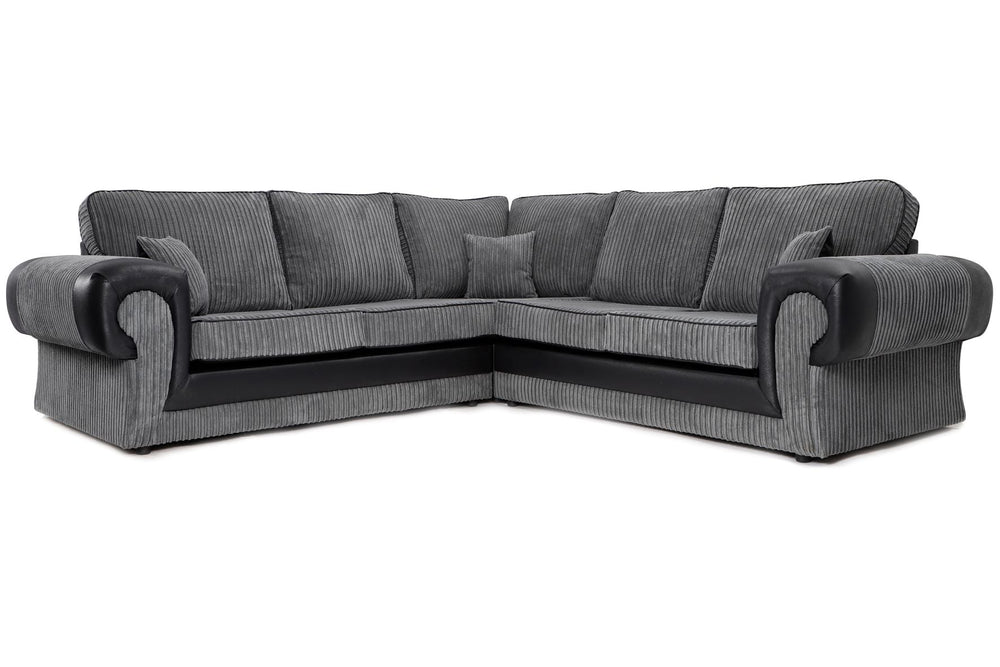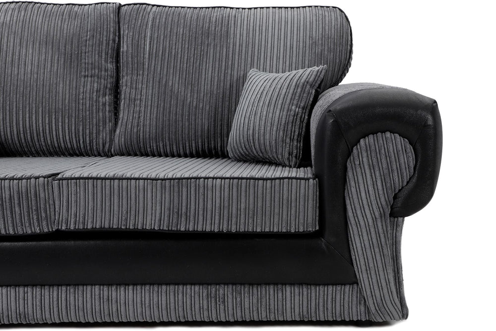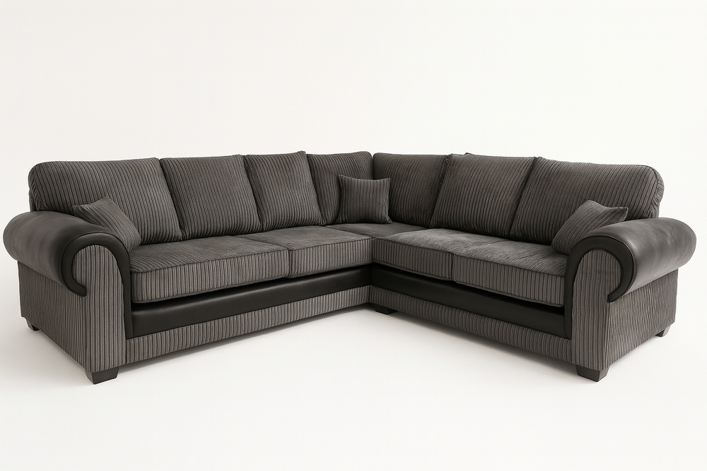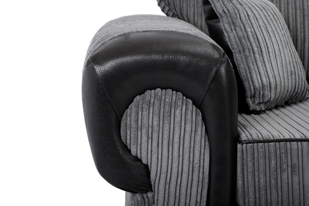 The Tangent Sofa combines modern style with everyday comfort. Upholstered in soft grey cord fabric with sleek black leather-look trim, it offers a bold two-tone design that stands out in any living room.