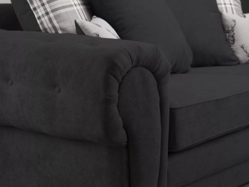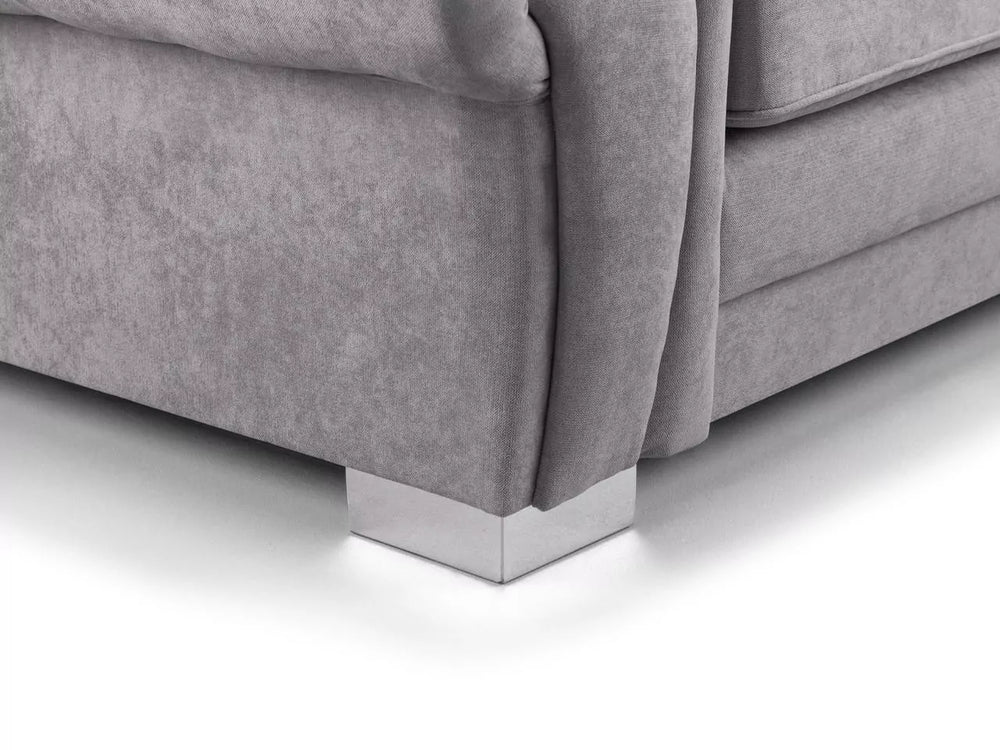 The Verona sofa strikes the perfect balance between timeless elegance and contemporary design. With its button-tufted scroll arms and sleek chrome-effect feet, it adds a touch of sophistication to any living space.