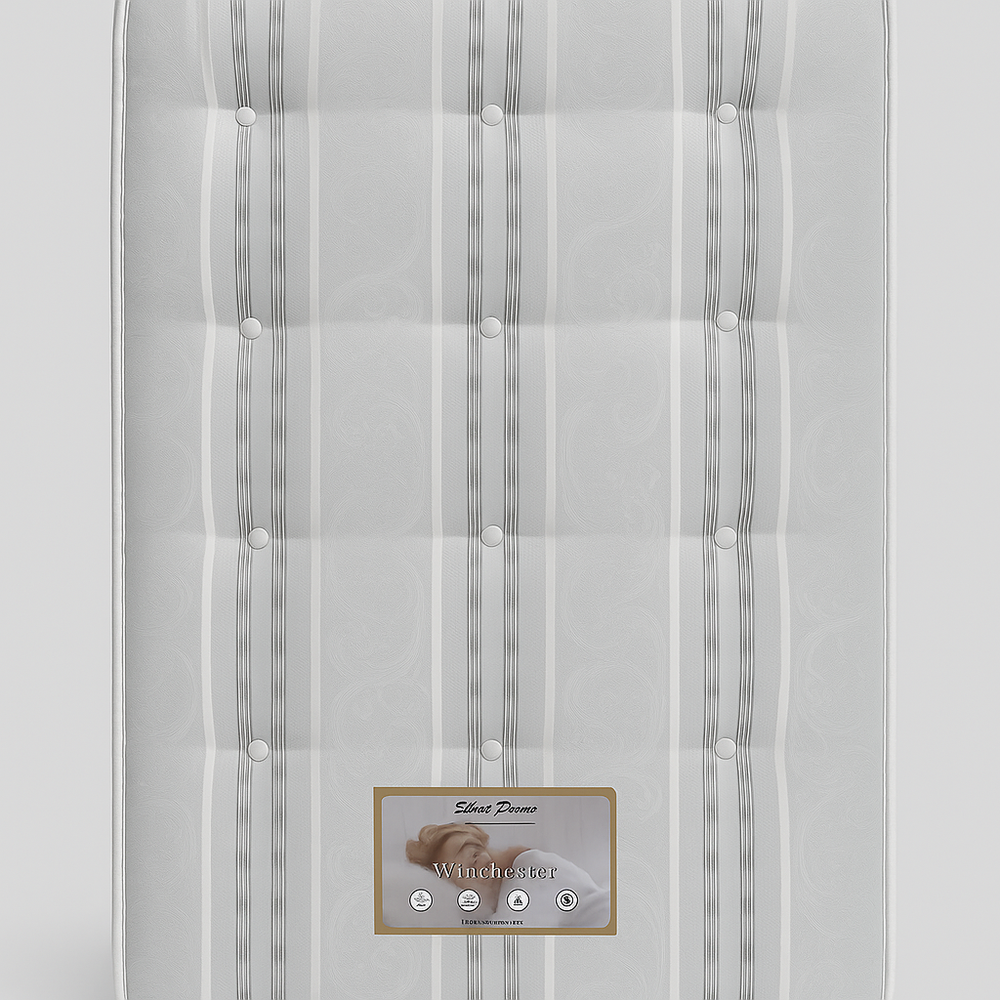 The Winchester Mattress combines orthopaedic support with sophisticated detailing, offering a balance of firm comfort, breathability, and classic elegance.